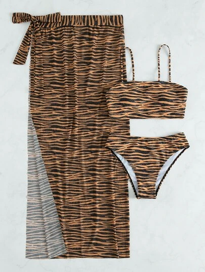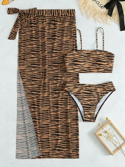 3pack Zebra Stripe Bikini Swimsuit & Beach Skirt