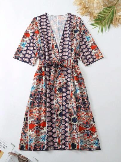 Be the first to review “Allover Print Belted Kimono” Cancel reply