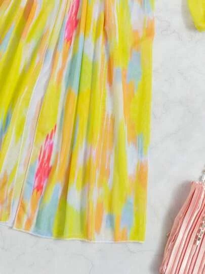 SHEIN Clasi Plunging Neck Butterfly Sleeve Split Thigh Dress