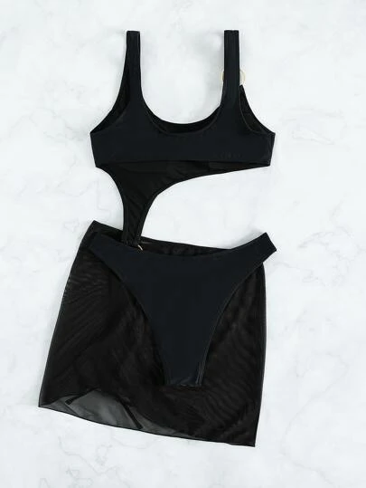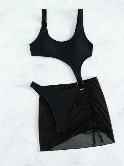 BOUDOIRCORE Cut Out O-ring One Piece Swimsuit & Beach Skirt