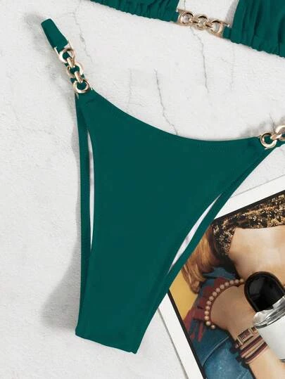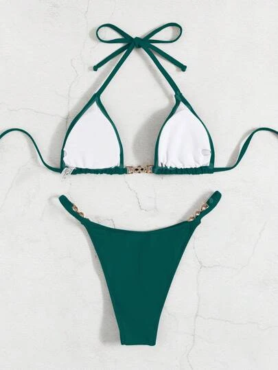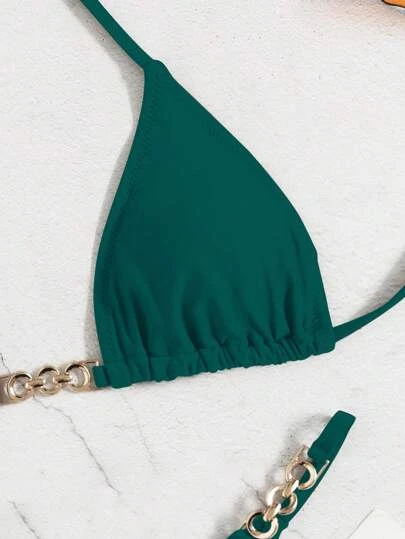 Chain Linked Halter Triangle Bikini Swimsuit