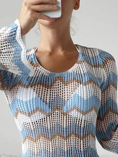 Chevron Pattern Backless Knot Cover Up Dress Without Bikini