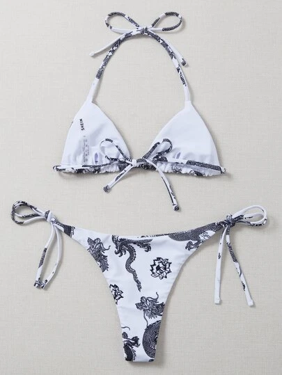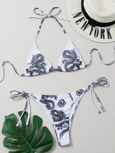 Chinese Dragon Bikini Set Triangle Bra & Thong Bottom 2 Piece Bathing Suit