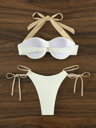 Color Block Halter Push Up Bikini Swimsuit
