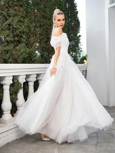 Contrast Lace Mesh Overlay Cami Wedding Dress