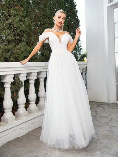 Be the first to review “Contrast Lace Mesh Overlay Cami Wedding Dress” Cancel reply