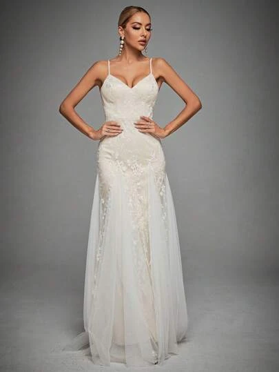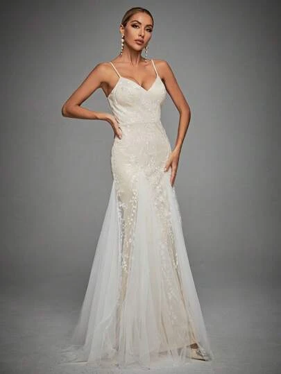Be the first to review “Contrast Mesh Hem Cami Wedding Dress” Cancel reply