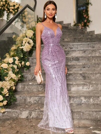 Missord Sweetheart Neck Ruffle Trim Mermaid Hem Sequin Formal Dress