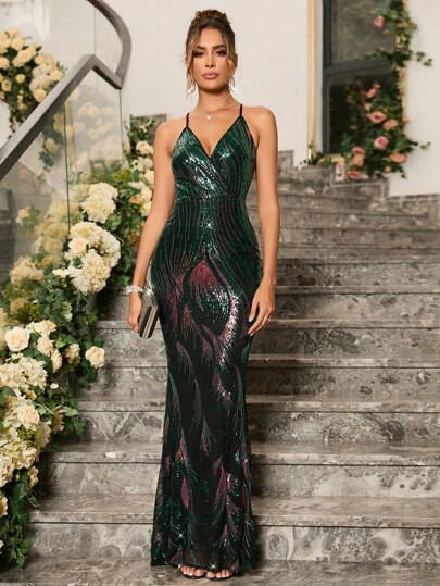 Crisscross Backless Sequin Cami Dress