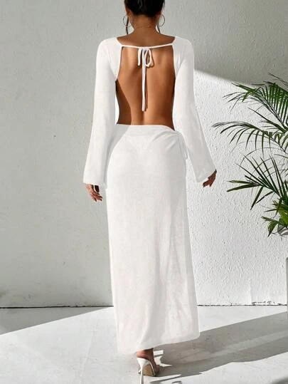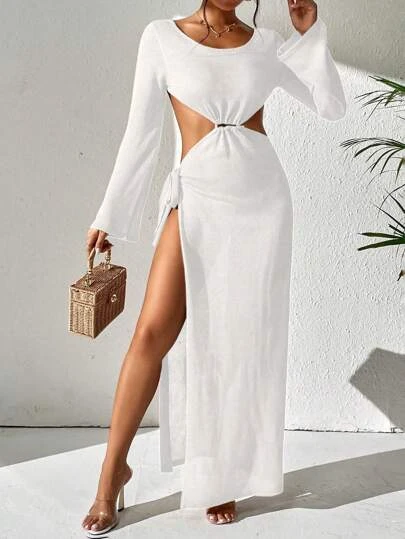 Cut Out Knot Side Split Thigh Cover Up Dress
