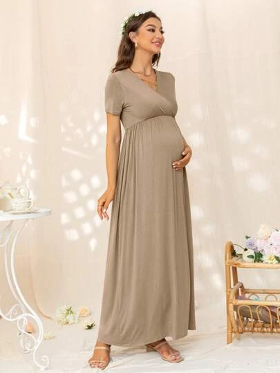 DEARCASE Maternity Solid Surplice Neck Dress