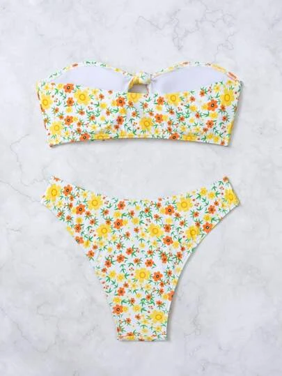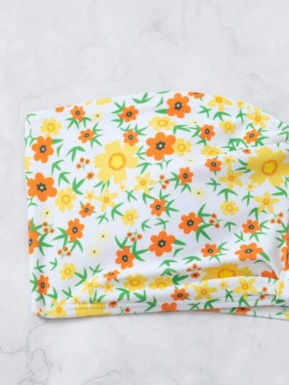 Ditsy Floral Print Bandeau Bikini Swimsuit