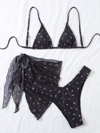 Ditsy Floral Triangle Bikini Swimsuit With Beach Skirt