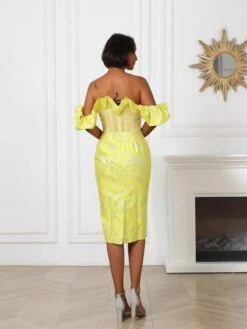 Be the first to review “Floral Jacquard Ruffle Trim Off Shoulder Dress” Cancel reply