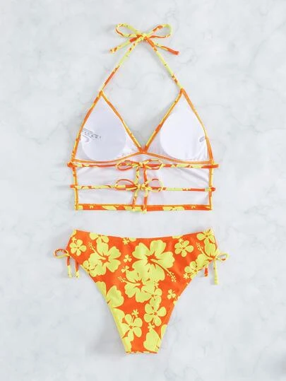 Floral Print Halter Bikini Swimsuit