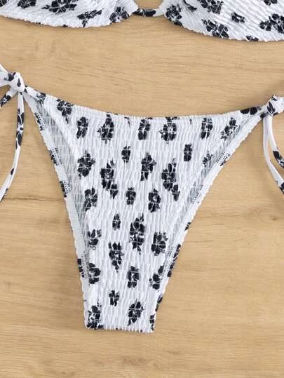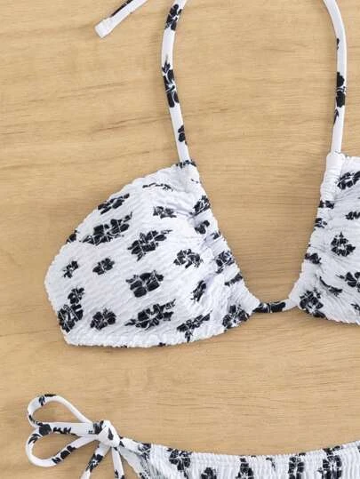 Floral Print Halter Triangle Tie Side Bikini Swimsuit