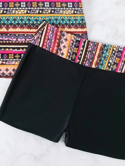 Geo Print Shorts Bikini Swimsuit