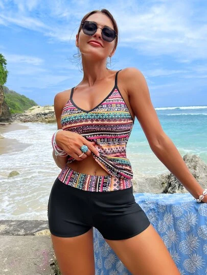 Be the first to review “Geo Print Shorts Bikini Swimsuit” Cancel reply