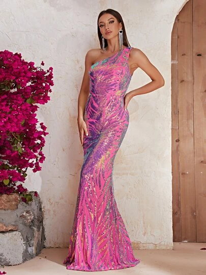 Giffniseti One Shoulder Sequin Mermaid Hem Formal Dress