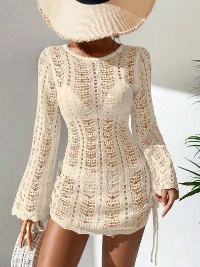 Hollow Out Drawstring Side Cover Up Dress Without Bikini Set
