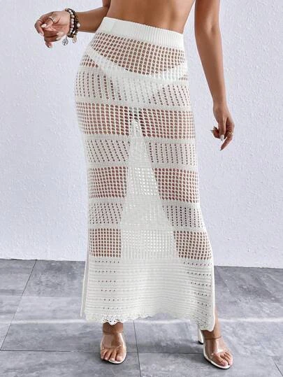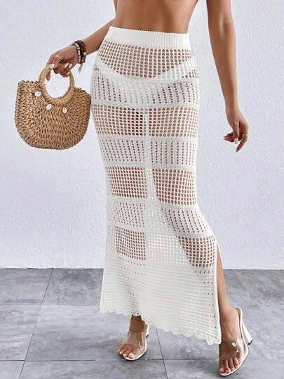 Hollow Out Split Thigh Cover Up Skirt Without Bikini