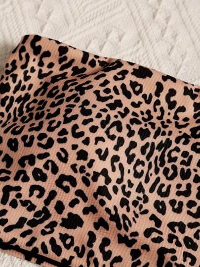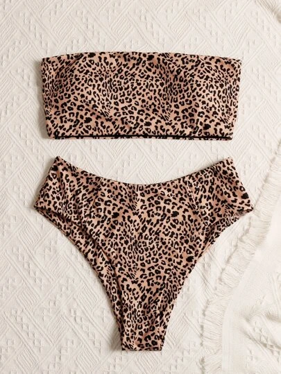 Leopard Bandeau High Waisted Bikini Swimsuit