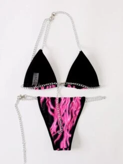 Be the first to review “Lightning Print Bikini Set Chain Linked Micro Triangle Bra & Thong 2 Piece Swimsuit” Cancel reply