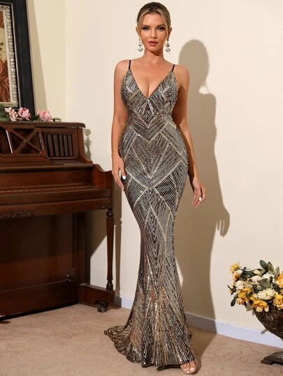 LOVE&LEMONADE Open Back Mermaid Hem Sequin Slip Formal Dress