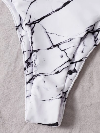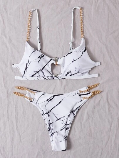 Marble Print Chain Linked Bikini Swimsuit