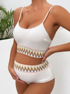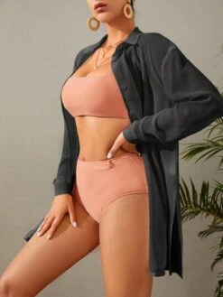 SHEIN Maternity 3pcs Tropical Print Drawstring Bikini Swimsuit With Kimono