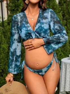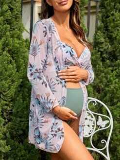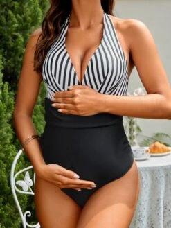 SHEIN Maternity Tropical Print Backless Halter Bikini Swimsuit