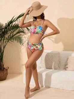 SHEIN Maternity Tropical Print Contrast Tape Bikini Swimsuit
