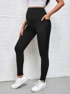 SHEIN Maternity Phone Pocket Top-stitching Wideband Waist Leggings