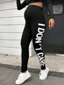 SHEIN Maternity Slogan Graphic Adjustable Elastic Waist Leggings