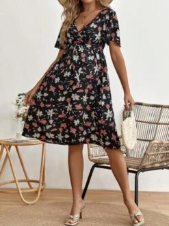 SHEIN Maternity Guipure Lace Insert Split Thigh Ruffle Hem Cami Dress