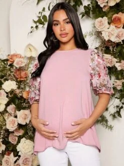 SHEIN Maternity Ditsy Floral Print Butterfly Sleeve Peplum Blouse