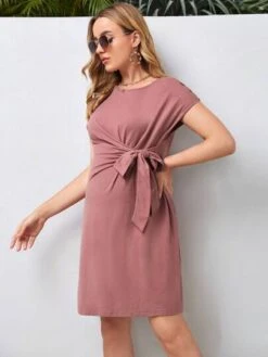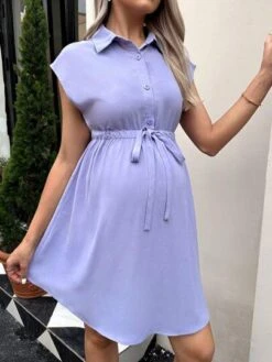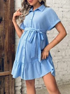 SHEIN Maternity Batwing Sleeve Ruffle Hem Belted Shirt Dress