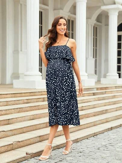 Be the first to review “Maternity Dalmatian Print Ruffle Trim Cami Dress” Cancel reply