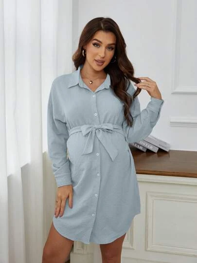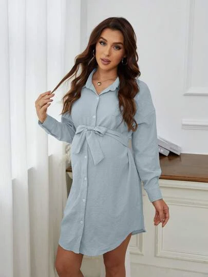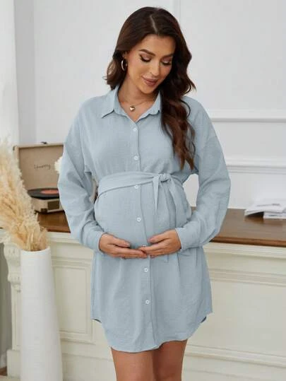 Be the first to review “Maternity Drop Shoulder Belted Shirt Dress” Cancel reply