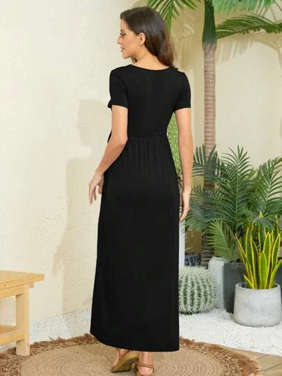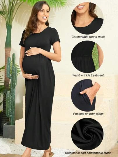 Maternity Solid Hidden Pocket Dress