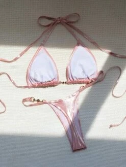 Be the first to review “Metallic Chain Linked Halter Triangle Bikini Swimsuit” Cancel reply