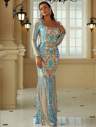 Missord Sequin Baroque Mermaid Hem Formal Dress