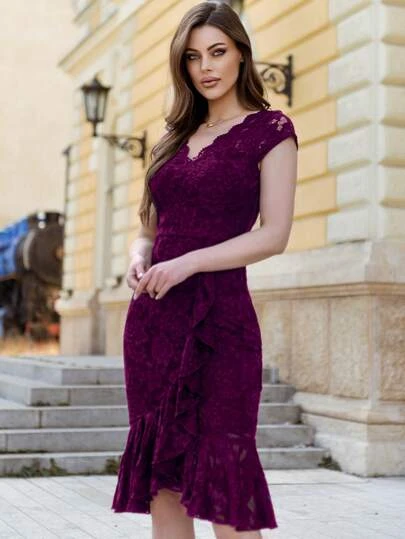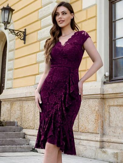 MIUSOL Solid Ruffle Trim Wrap Hem Party Dress