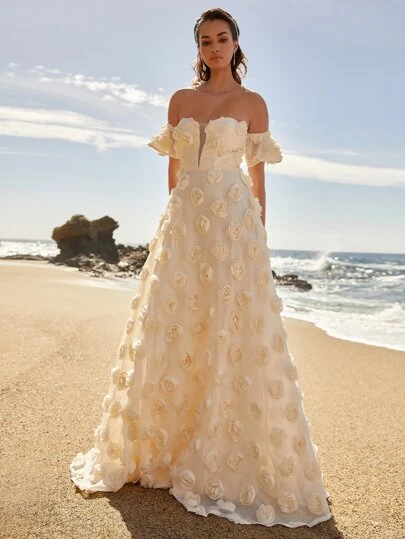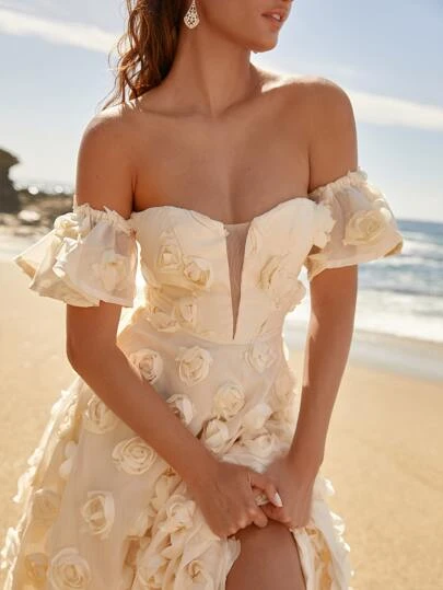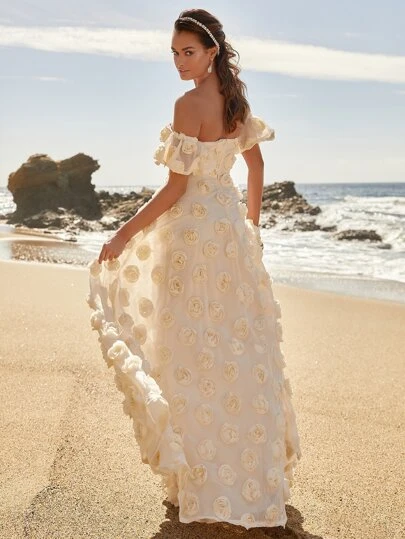 Off Shoulder Butterfly Sleeve Applique Prom Dress