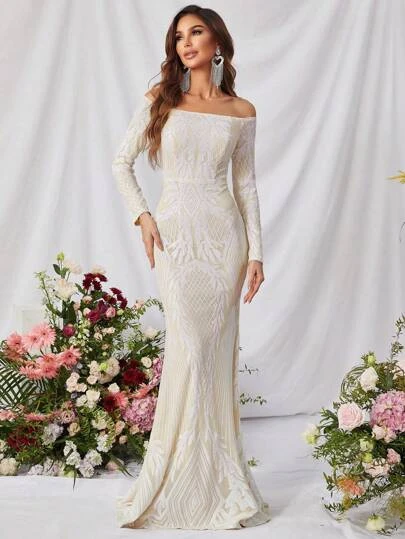 Off Shoulder Mermaid Hem Sequin Formal Dress