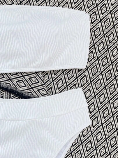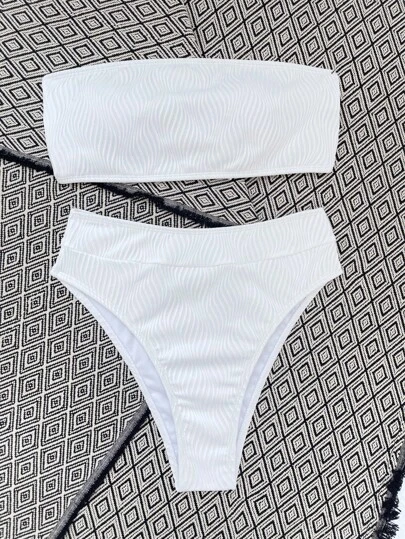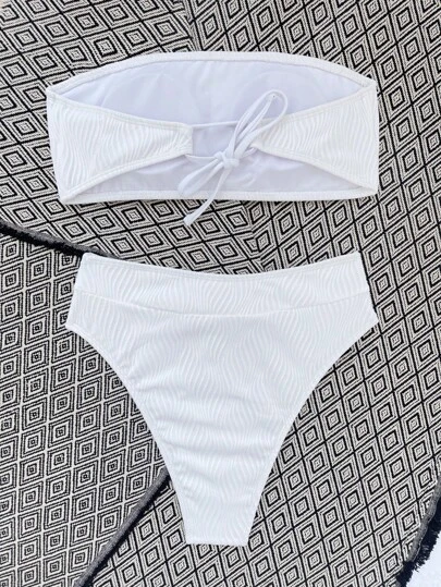 Rib Bandeau High Waisted Bikini Swimsuit