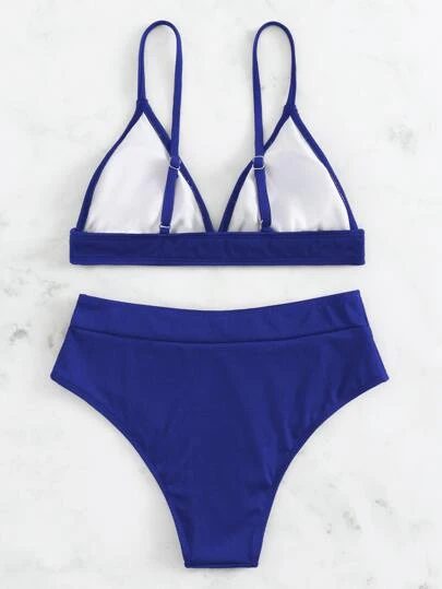 Rib Triangle High Waisted Bikini Swimsuit