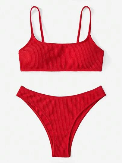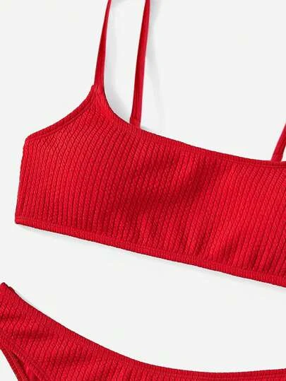 Ribbed Bikini Set Wireless Bra Top & Hipster Bikini Bottom 2 Piece Swimsuit