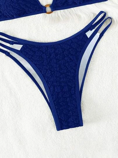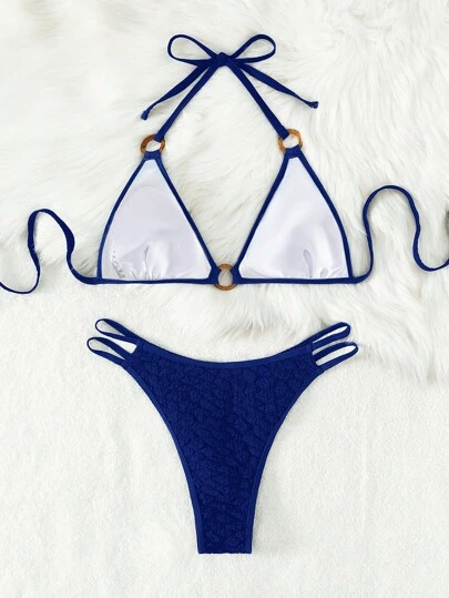 Ring Linked Halter Triangle Bikini Swimsuit