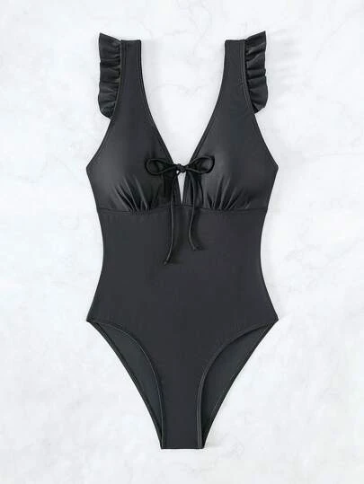 Be the first to review “Ruffle Trim Tie Front Ruched Bust One Piece Swimsuit” Cancel reply